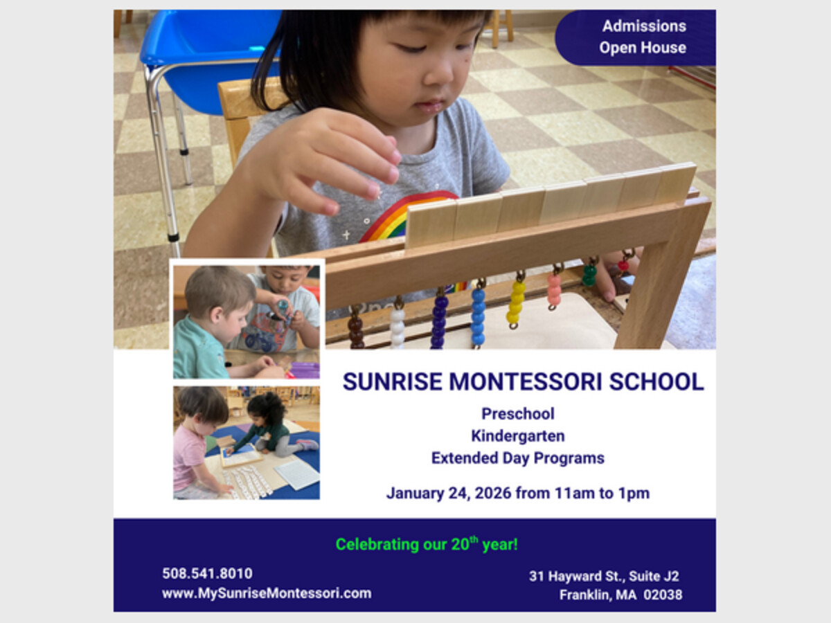 Families with young children are welcome to tour our school, meet our teachers, Head of School and current parent representatives. Discover how our Montessori preschool and kindergarten programs can benefit your family. Applications for the 2026-2027 are being accepted. www.MySunriseMontessori.com