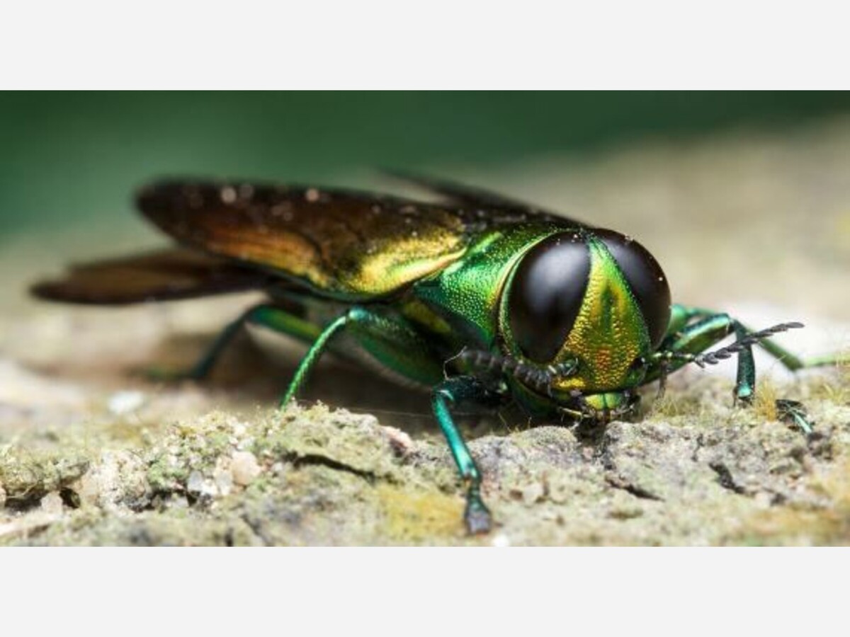First discovered more than 20 years ago in Michigan, the emerald ash borer (EAB) is a nonnative pest originally imported from East Asia. As the name suggests, the emerald ash borer feasts on ash trees, primarily white ash (Fraxinus americana), green ash (Fraxinus pennsylvanica), and black (or brown) ash (Fraxinus nigra). Ash trees are a common sight in both wild and urban environments across central and eastern North America. Because of the wide range of hosts available, this destructive beetle has now taken up residence in approximately 35 U.S. states and five Canadian provinces.