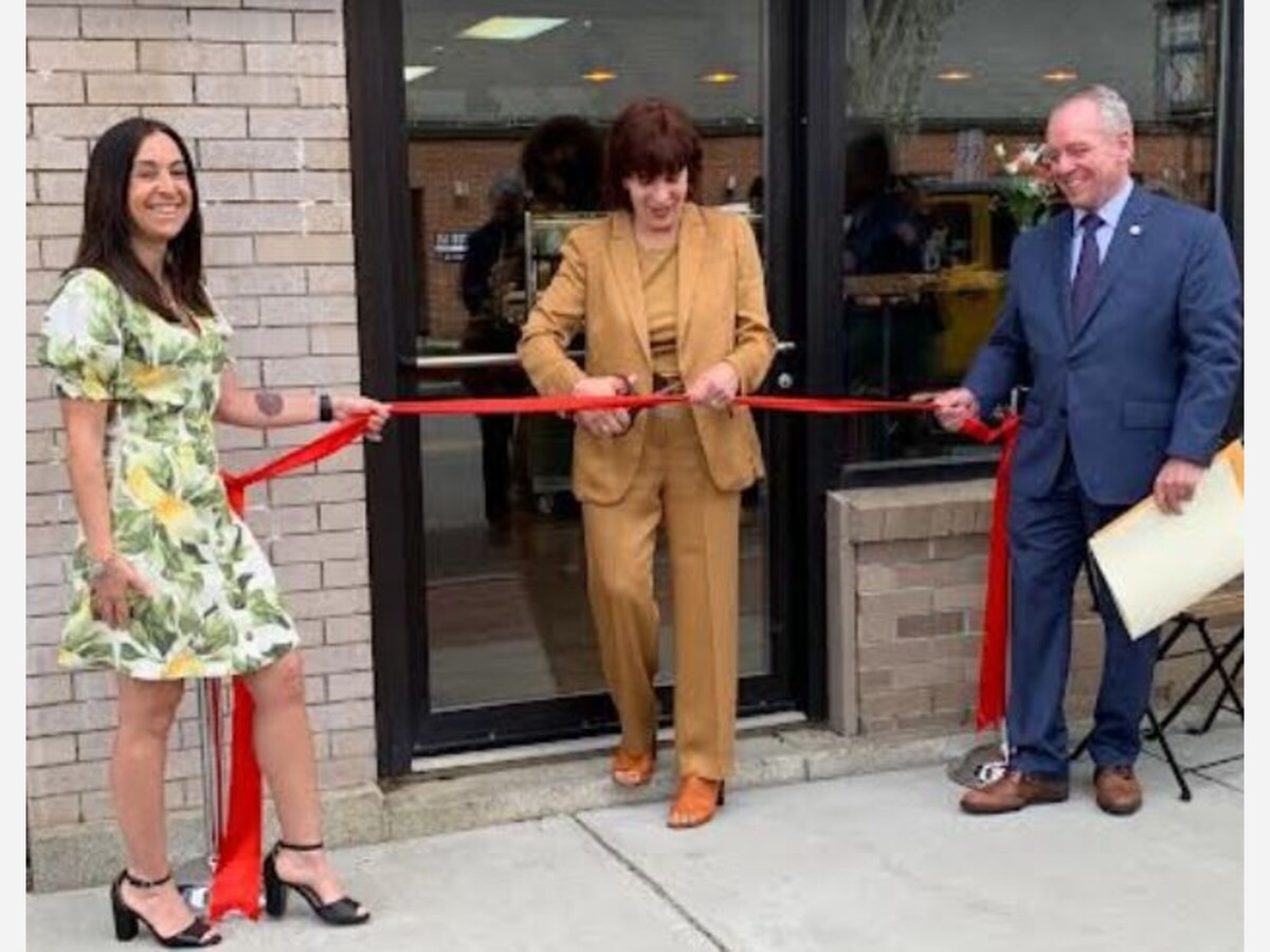 Just before 5 pm, a small crowd gathered on Main Street adjacent to the Franklin School for the Performing Arts, the occasion being a ribbon cutting for the area's newest business, Applause -- a combination gelateria and gift shop, also founded by Raye Lynn Mercer.
