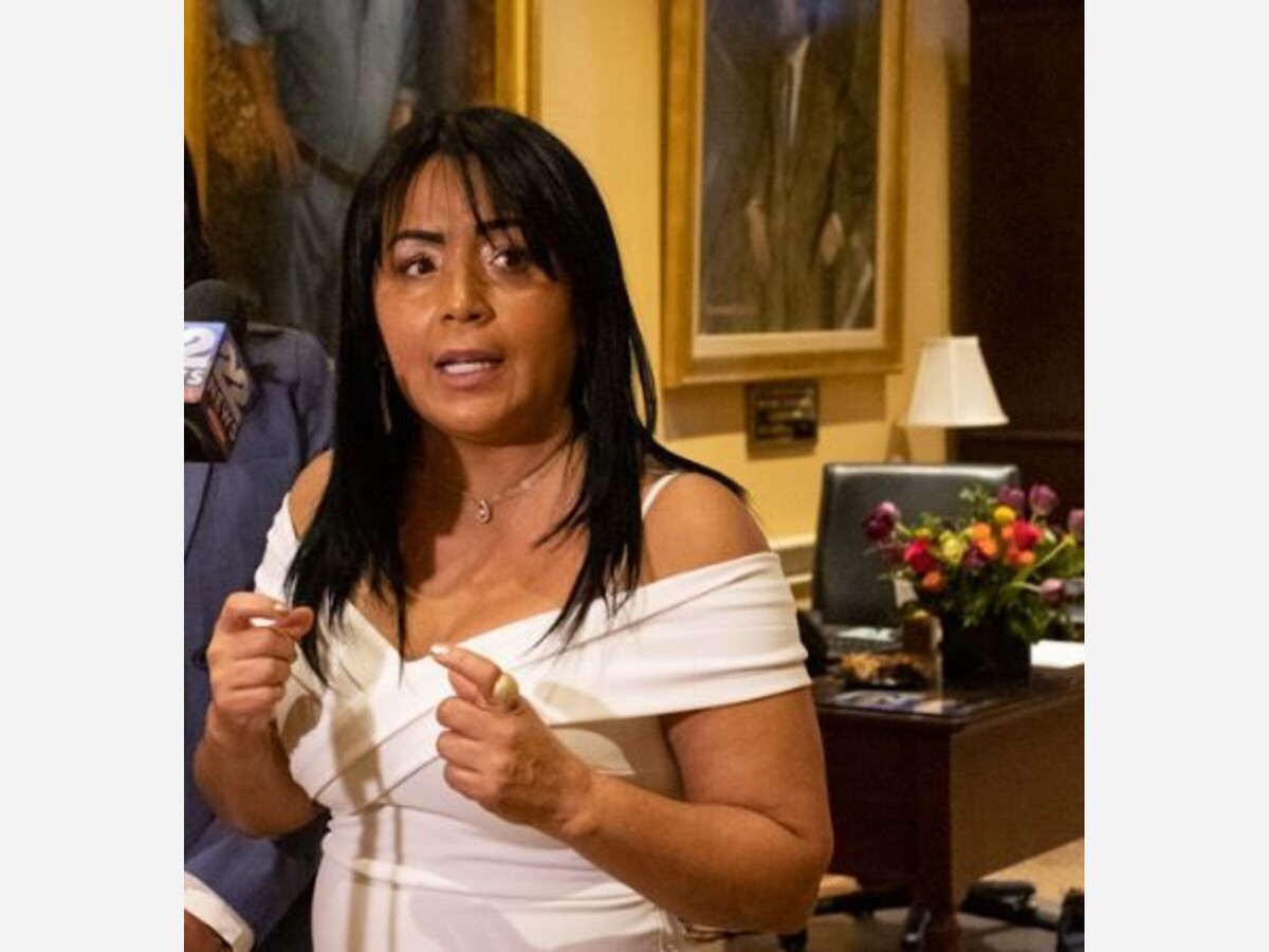 Governor's Council on Latino Empowerment Vice Chair Gladys Vega (right) speaks to reporters after the council's first meeting. Gov. Maura Healey announced members of the 40-person council on Tuesday, saying they would "break down systemic barriers and expand access opportunity by prioritizing education, job training, entrepreneurship and affordability." [Sam Doran/SHNS]