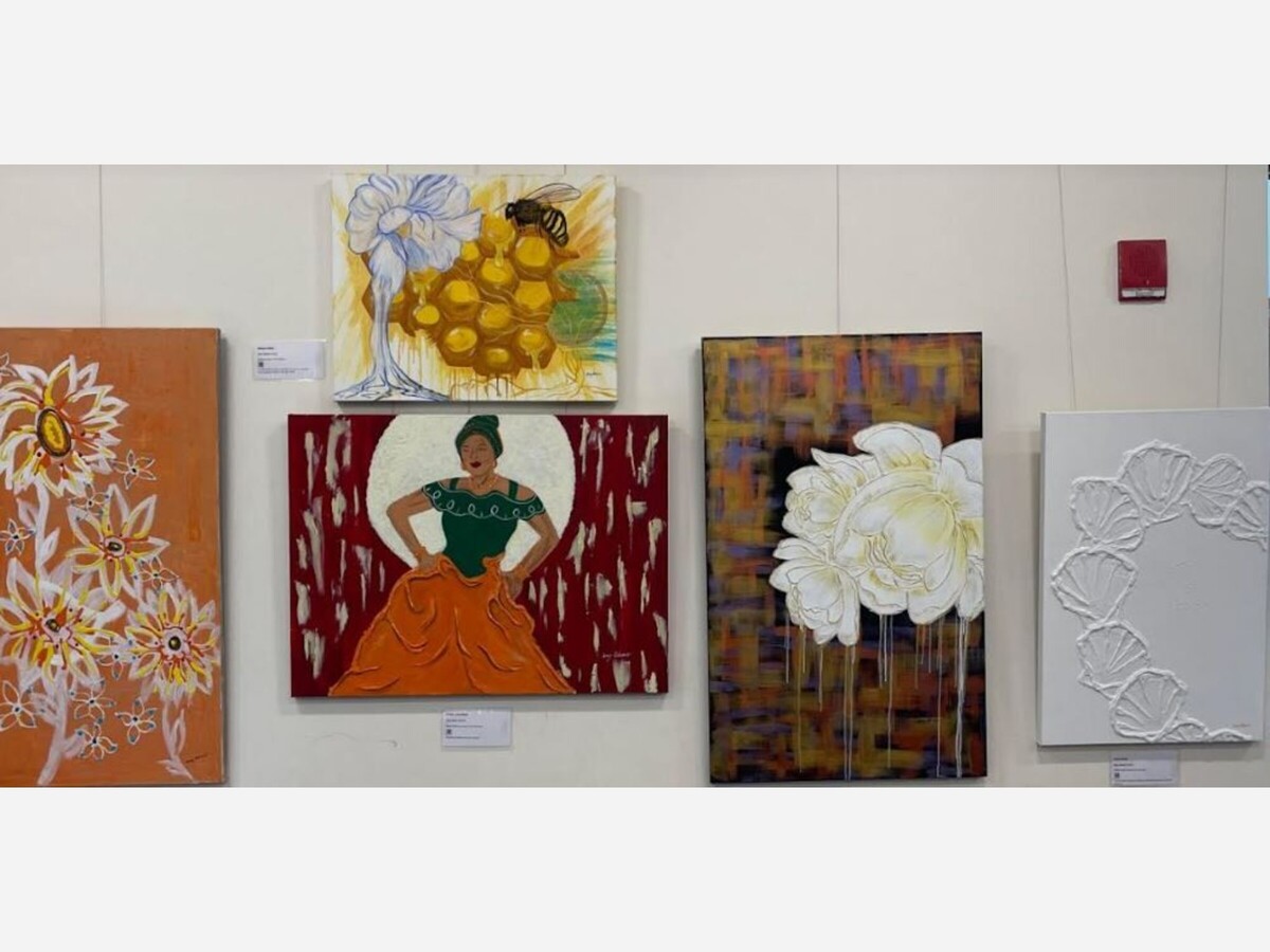 A new exhibit was recently hung is in the Friends of the Franklin Library Communtiy Room, entitled, “Love Letter.” According to artist Amy Adams it is an effort to make art more accessible to our blind and low vision community. The installation is family friendly and encourages you to touch, view its strategic color combinations and find braille in some of the art.
