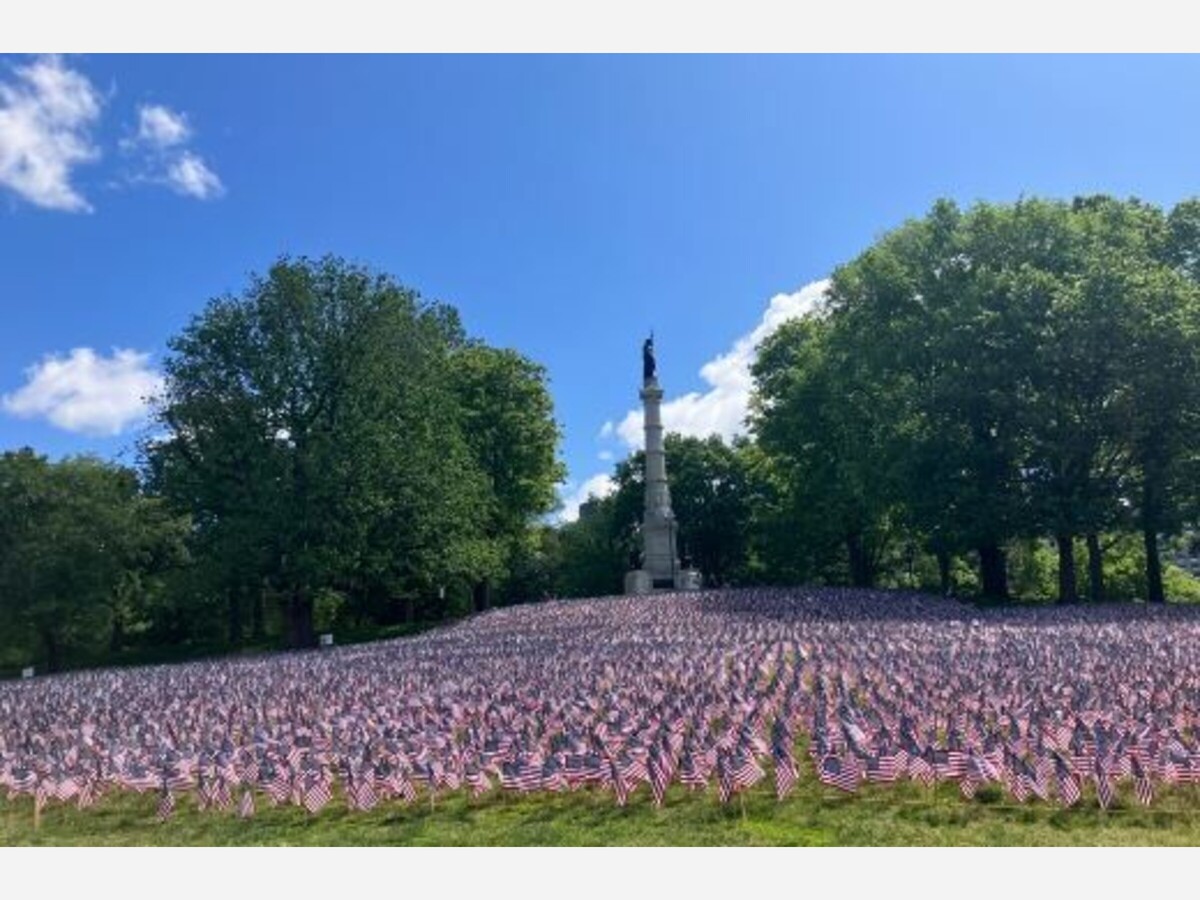 Ahead of Memorial Day, more than 37,000 American flags are planted on Boston Common to honor fallen Massachusetts service members from the Revolutionary War to today. [Alison Kuznitz/SHNS