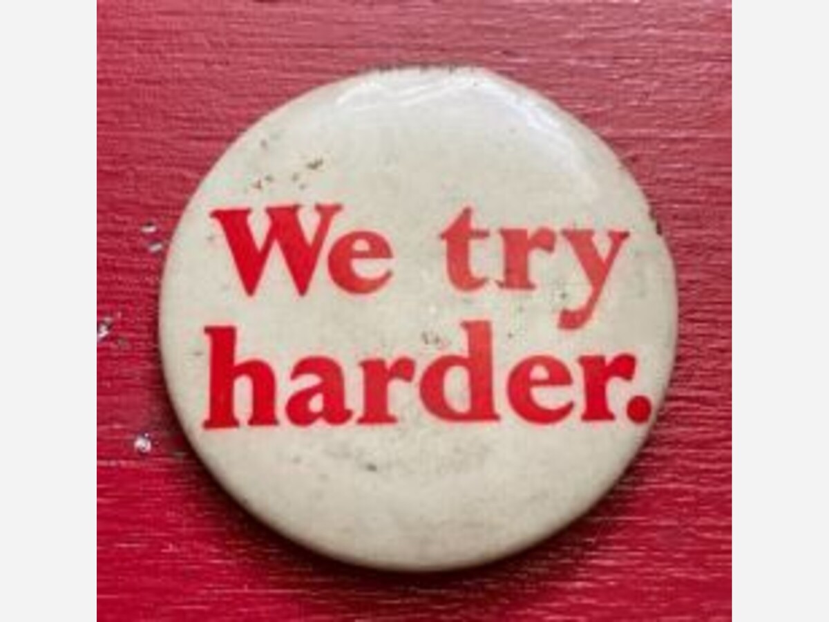 IMAGE: Avis Rentacar button from long-running "When you are #2 [after Hertz]you try harder," advertising campaign, found for sale on eBay