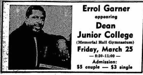 Garner graced the stage of Dean at the then new Pieri Gymnasium, in March of 1960, filling it with an appreciative crowd, only too happy to listen to his flowing, rythmic jazz piano, accompanied by a bassist and drummer.