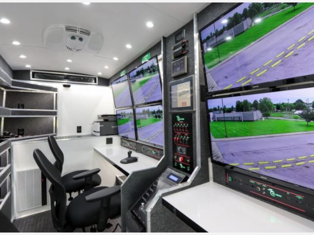 The Mobile Drone Command Center, a Draxxon DX-1000, provides for state-of-the-art drone operation. The Center includes two internal flight stations that can operate different systems simultaneously or separately, an in-vehicle monitor TV capable of being viewed in direct daylight, and an external proprietary antenna that allows operators to increase the flight distance of the drones. The van technology is powered by an ecofriendly inverter which eliminates the need for a gas generator.