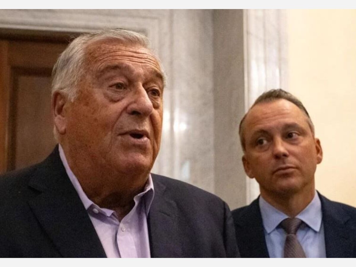 House Speaker Ron Mariano and Ways and Means Chairman Aaron Michlewitz answer reporters' questions after caucusing privately with fellow Democrats on Oct. 17, 2023.