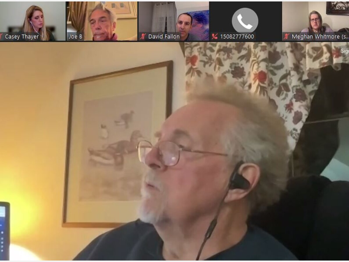Above, ZBA Chair Hunchard tries to explain the ADU regs to angry abutters via Zoom.