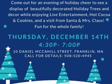 The Senior Center is hosting Winter Wonderland on Thursday, December 14th from 4:30 - 7:00pm. It's an evening of beautifully decorated holiday trees, decor, live entertainment, hot cocoa and cookies, and visits with Santa and Mrs. Claus. It's perfect for all ages and the whole family.