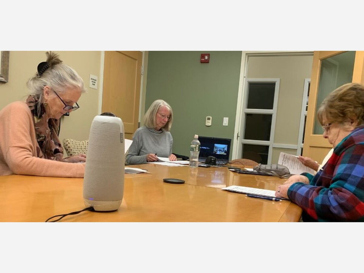 Above, Mary Olsson, Toni Smit, and Sandy Hunter of the Cemetery Association review material at the start of the meeting. Other trustees include Lois D'Amelio (president), Donald Goddard, Kimberly Lewis, and Nancy Ross.