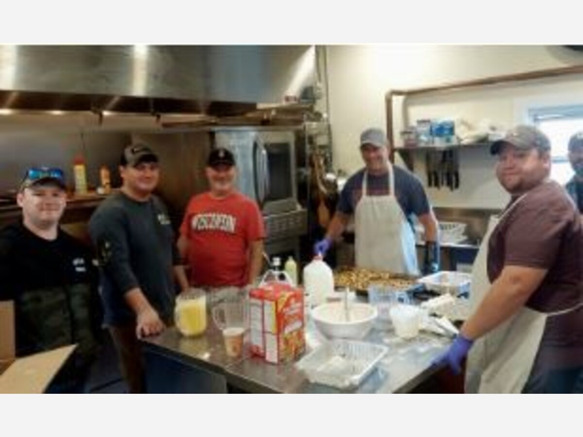 Fare includes eggs, pancakes, sausage, home fries, baked beans, and coffee/juice with a flat fee of adults $10, kids under 12 $5 .