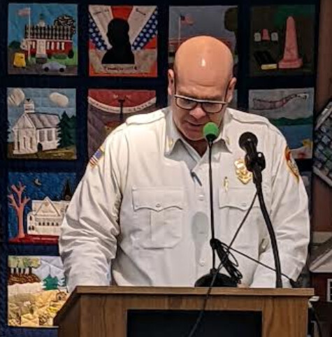 Below, Fire Chief James McLaughlin, reading the portion of Ben Franklin's