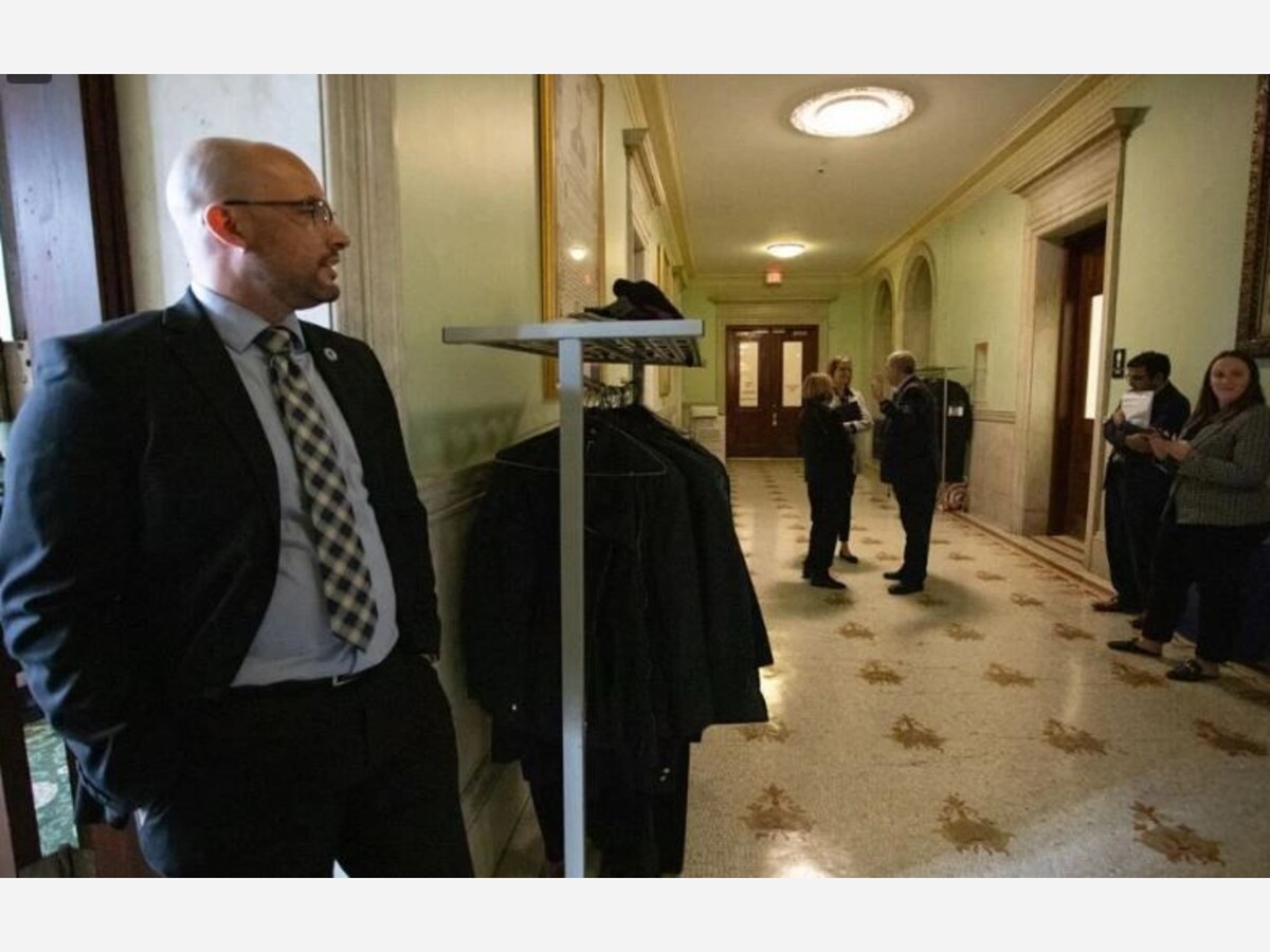 Rep. Joe McKenna looks out into the House Lobby while Senate members of the gun reform conference committee huddle before sitting down at the negotiating table on Wednesday, March 20, 2024 for their first meeting. McKenna, the lone member of the six-person conference to vote against passage of the firearms bill, said he was approaching the talks with "an open mind and an open heart" toward reaching consensus. Meanwhile, The 1980s had the Massachusetts Miracle, but are we now in the era of the Massachusetts Malaise, asks State House News Services? The public conversation these days generally revolves around a few accepted truths: there aren't enough places to live here and the ones that are available are ridiculously expensive, our roads and transit lines are in lousy condition and are usually too crowded to get anywhere efficiently, an unabated influx of immigrants has created an emergency shelter funding and humanitarian crisis, and tax revenues aren't even living up to the governor's already-slashed expectations. But, hey, at least the Red Sox season starts soon ...