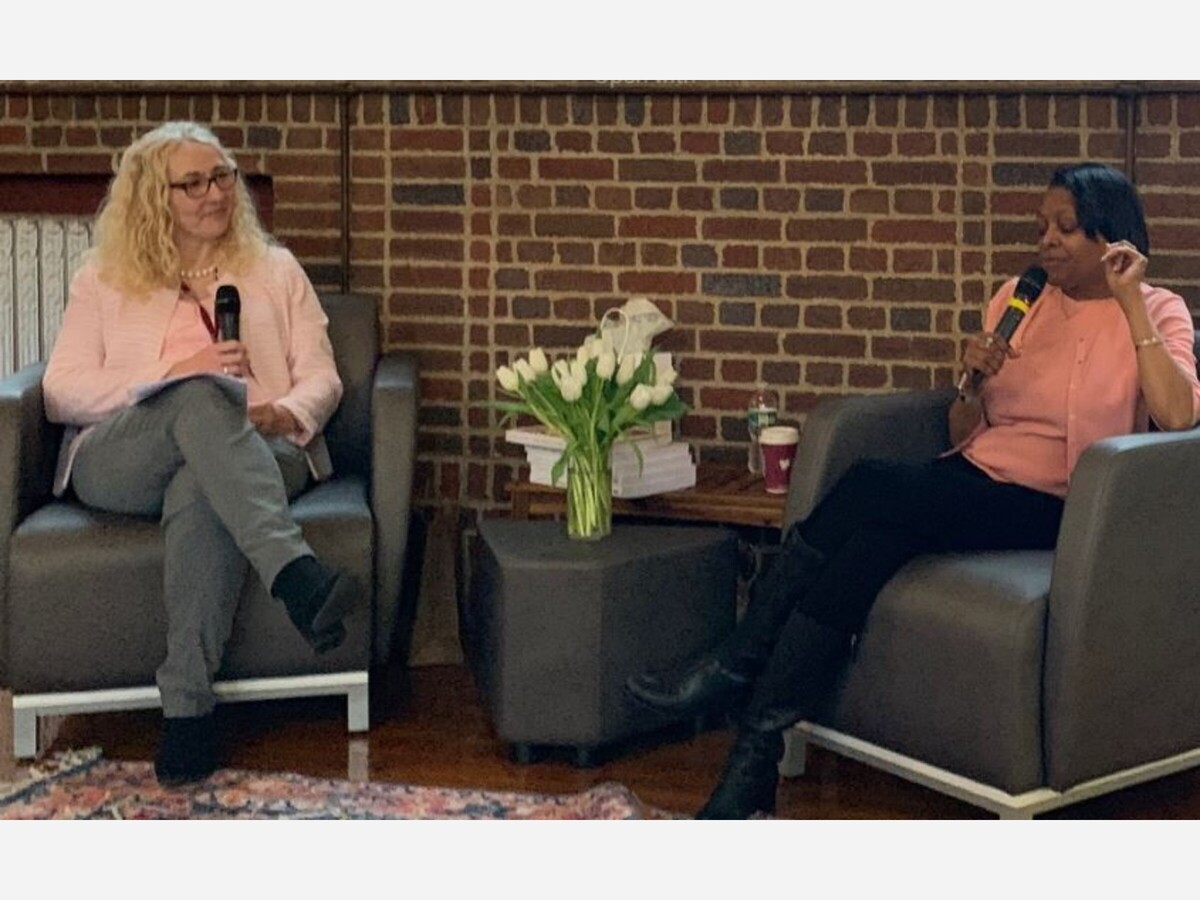 Left, Robin Bowman. Assistant to the Dean, School of Liberal Arts at Dean College, interviewing Kenyatta Berry during an event on March 27.