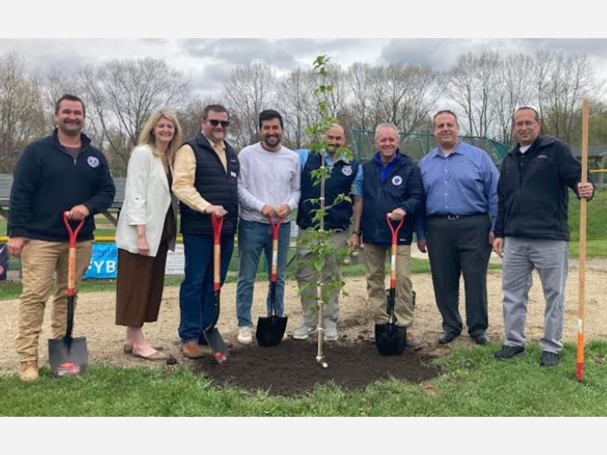 Tree planting began at Dacey Field last week thanks to a partnership between TruGreen, with regional operations in Franklin, and State Rep. Jeff Roy, which resulted in 100 trees being allotted to Franklin. Above, left to right - Tony Brunetta (Assistant Highway & Grounds Superintendent), Amy M. Frigulietti (Deputy Town Administrator) Ted Cormier-Leger (Town Councilor), Cobi Frongillo (Town Councilor), Carlos Rebelo (Highway & Grounds Superintendent), Jeffrey N. Roy (State Representative), David Leonhard (TruGreen Region Director) and Michael Reed, (TruGreen Market General Manager).