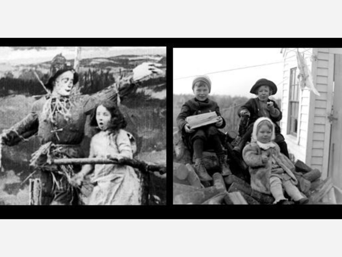 Above left, a scene from 1910 Wizard of Oz; at right an image of Franklin children, circa 1910.