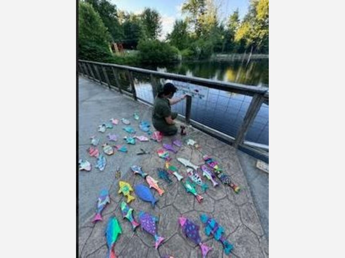 Tuesday's event featured art by students at the Gerald M Parmenter elementary school and fishes created and donated by Tri-County Regional Vocational Technical High School.