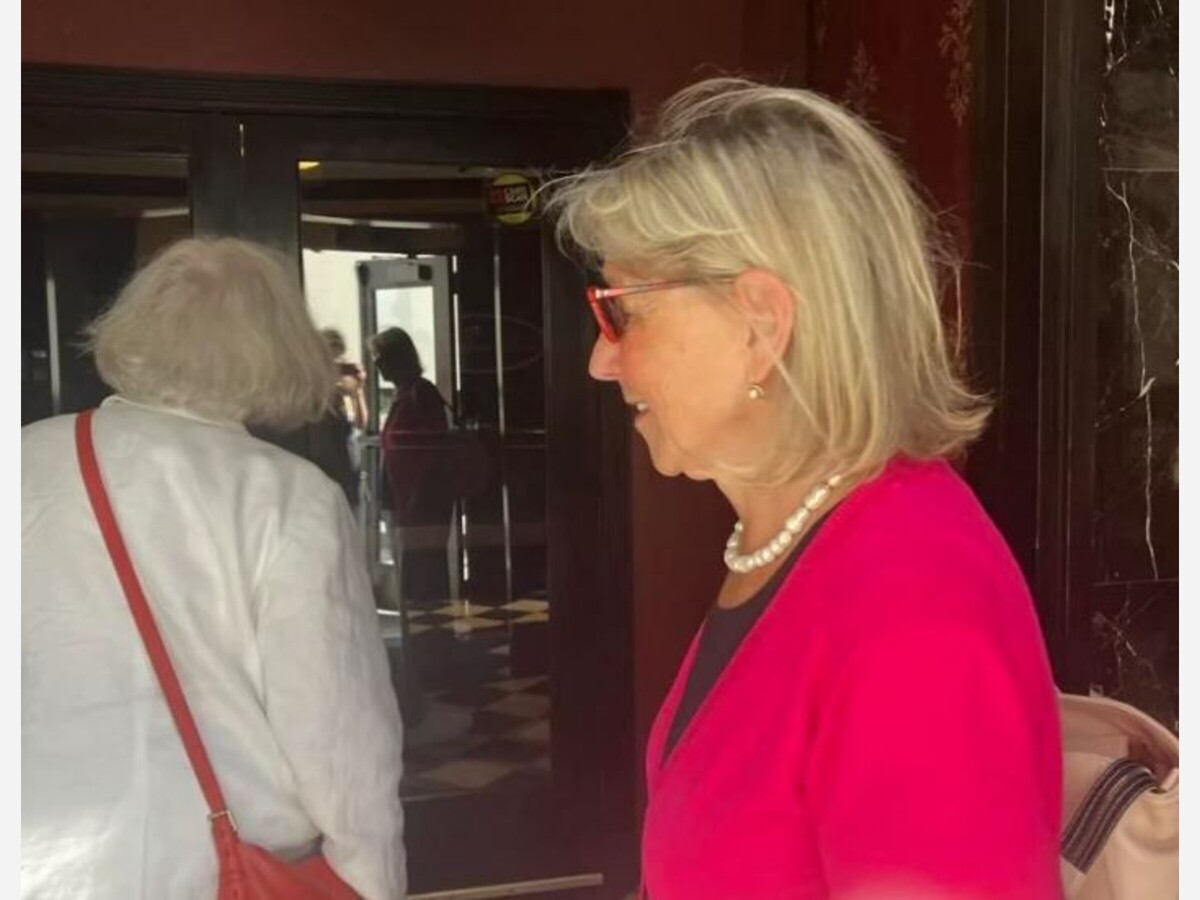 Senate President Karen Spilka entered Carrie Nation on Wednesday morning, July 31, 2024, to join a fundraiser. (Alison Kuznitz/SHNS)