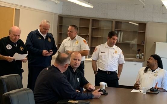 Kinney at the far right. Franklin Fire Chief James McLaughlin, not