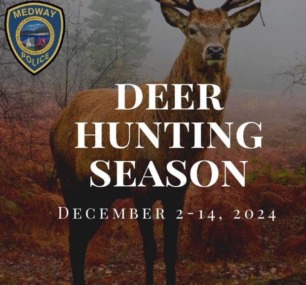 A timely reminder from the Medway Police! Monday, December 2nd is the start of the shotgun season for whitetail deer. The season runs till December 14th. Hunting hours begin a half hour before sunrise and end a half hour after sunset.