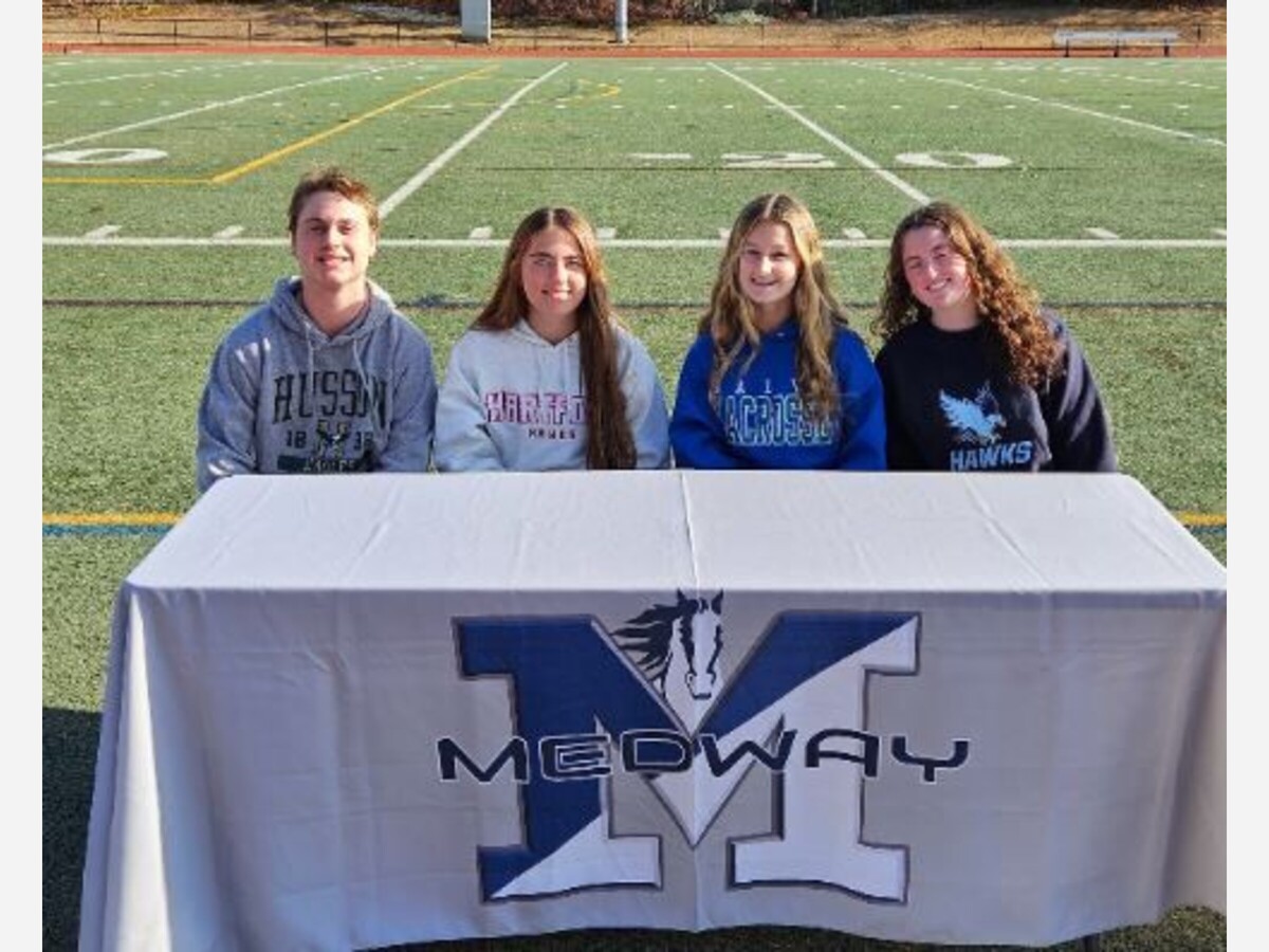 "I want to congratulate these four seniors on their acceptance to these schools and on their commitment to continue playing their sports," Principal Murray said. "They have shown dedication to their academics and athletics during their time at Medway High School, and I know they will continue to thrive as they make the transition into college."