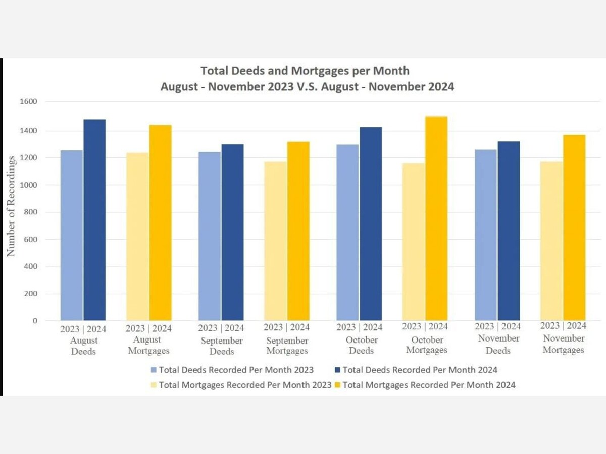 “November continued to show growth and demand in the real estate market, with increases in both mortgage and deed recordings,” concluded O'Donnell. “In the coming months, the inventory of available property and mortgage interest rate levels will likely play a big role in determining the direction of the market. Buyers, especially first-time home buyers, may continue to face challenges in finding affordable properties due to the high demand and limited inventory.”