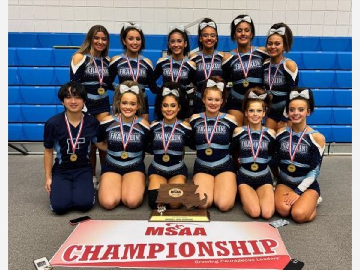 The MHS Cheer team repeated its win on Nov. 3 at the Panther Invitational in Marlborough, placing first in the division and securing the Grand Champion title. The team also received its highest score of the season, earning a 96.4 for its routine.
