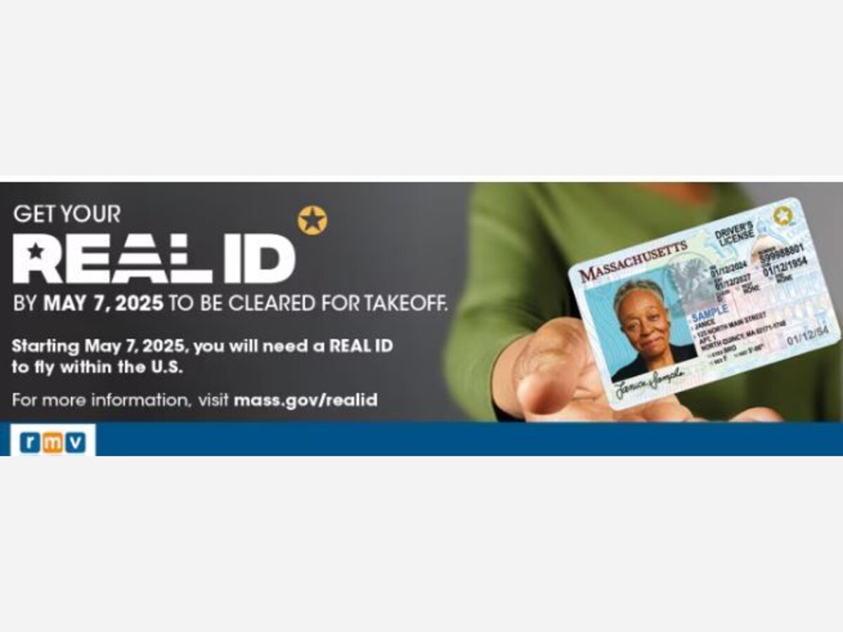 The Massachusetts Registry of Motor Vehicles (RMV) is reminding residents that beginning May 7, 2025, anyone traveling by plane domestically or entering certain federal facilities will need a Registry-issued REAL ID-compliant driver’s license or ID, or a valid passport. The Registry is strongly encouraging everyone seeking a REAL ID-compliant license or identification card to go online now at Mass.Gov/REALID to learn what documents are needed for a required in-person appointment. Appointments to upgrade to REAL ID are available now, and several RMV service centers offer Saturday appointments. Customers who already have a compliant credential may renew online as long as they have not had a name change.