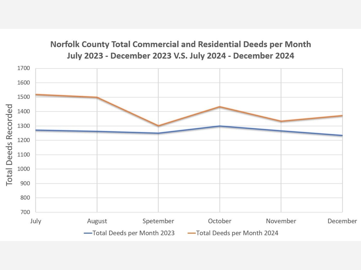 “Looking at the second half of 2024, recordings show a sustained increase in the overall number of deeds recorded year over year, reflecting a consistent interest in real estate in Norfolk County,” noted Register O’Donnell. “This indicates that the real estate market is performing decently, particularly in certain neighborhoods and property types in area communities.”