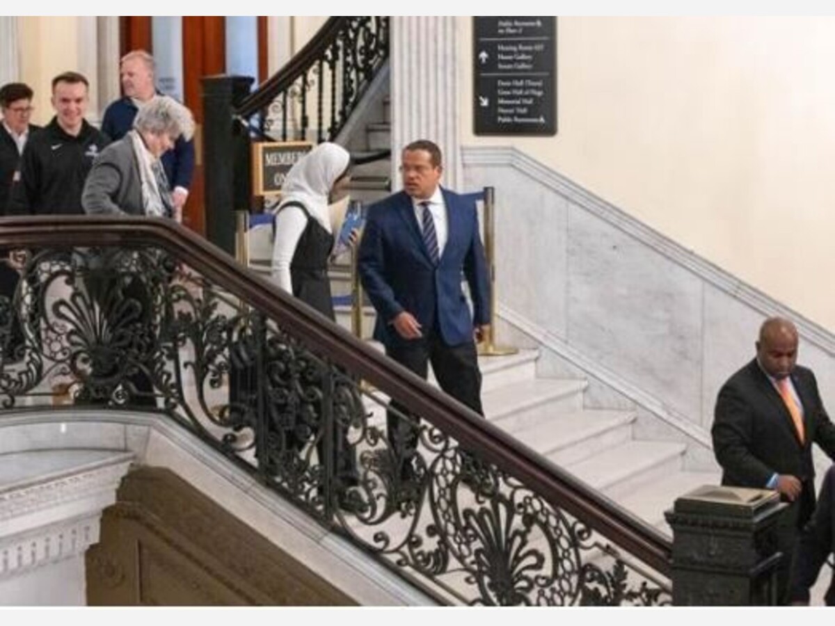 Keith Ellison, Minnesota's progressive attorney general and a former Democratic National Committee official, dropped in to the State House on Thursday to encourage members of his party.