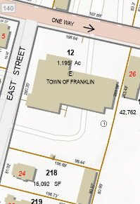 This site is actually two properties. The station building is located on a large, mostly low-lying property that abuts the Franklin High School land and St. Mary's Cemetery. It is on a small fraction of this land. A second smaller parcel has the Police Station visitor parking.
