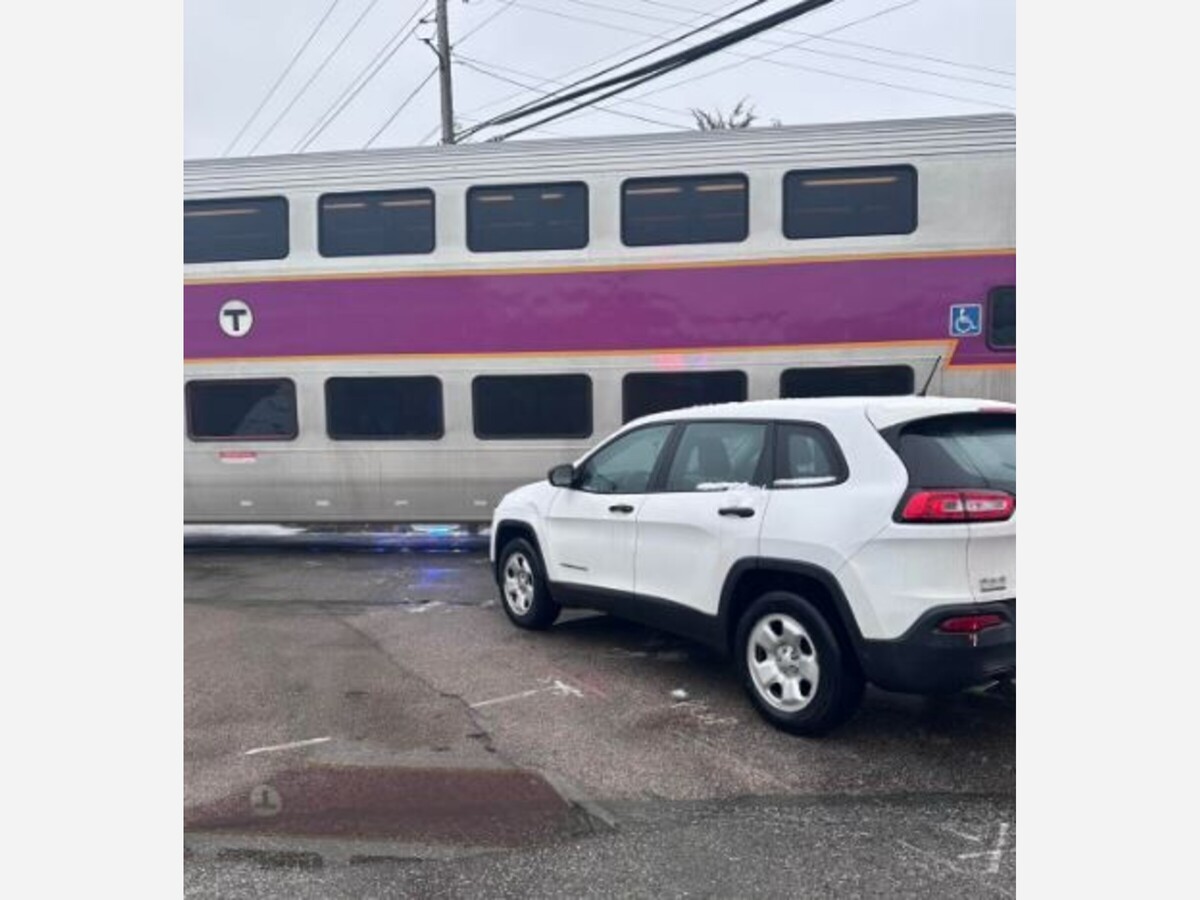 A Keolis spokesperson (the firm that operates the trains) stated, earlier this afternoon, a Commuter Rail train was involved in a minor collision with a car that ignored the crossing warning system. The gates were operating as intended at the time. Police have cleared the scene and train service has resumed.Franklin.