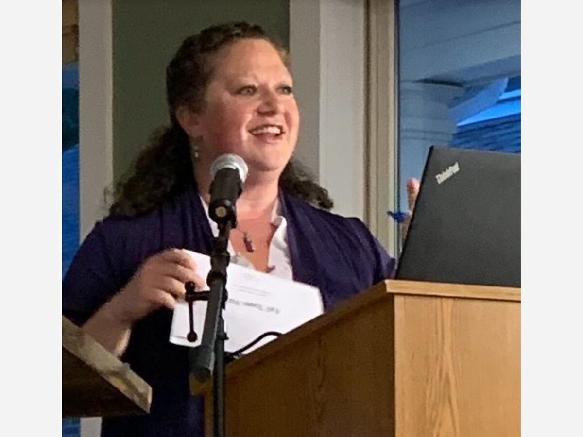 Above, Sen.Becca Rausch at Franklin Senior Center, Oct. 2024
