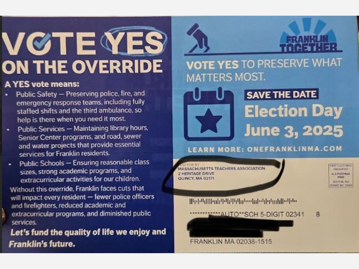 Recently, Franklin residents received a professionally designed mailer urging them to vote “Yes” on the upcoming Proposition 2½ override. What many may not realize is that this mailer was not funded by the Town, nor solely by a local group — it was paid for by the Massachusetts Teachers Association (MTA), one of the most powerful statewide unions.