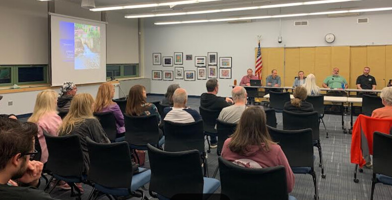 The meeting attracted about 35 people, most of whom seemed to be residents of the Sanford Mills condos.