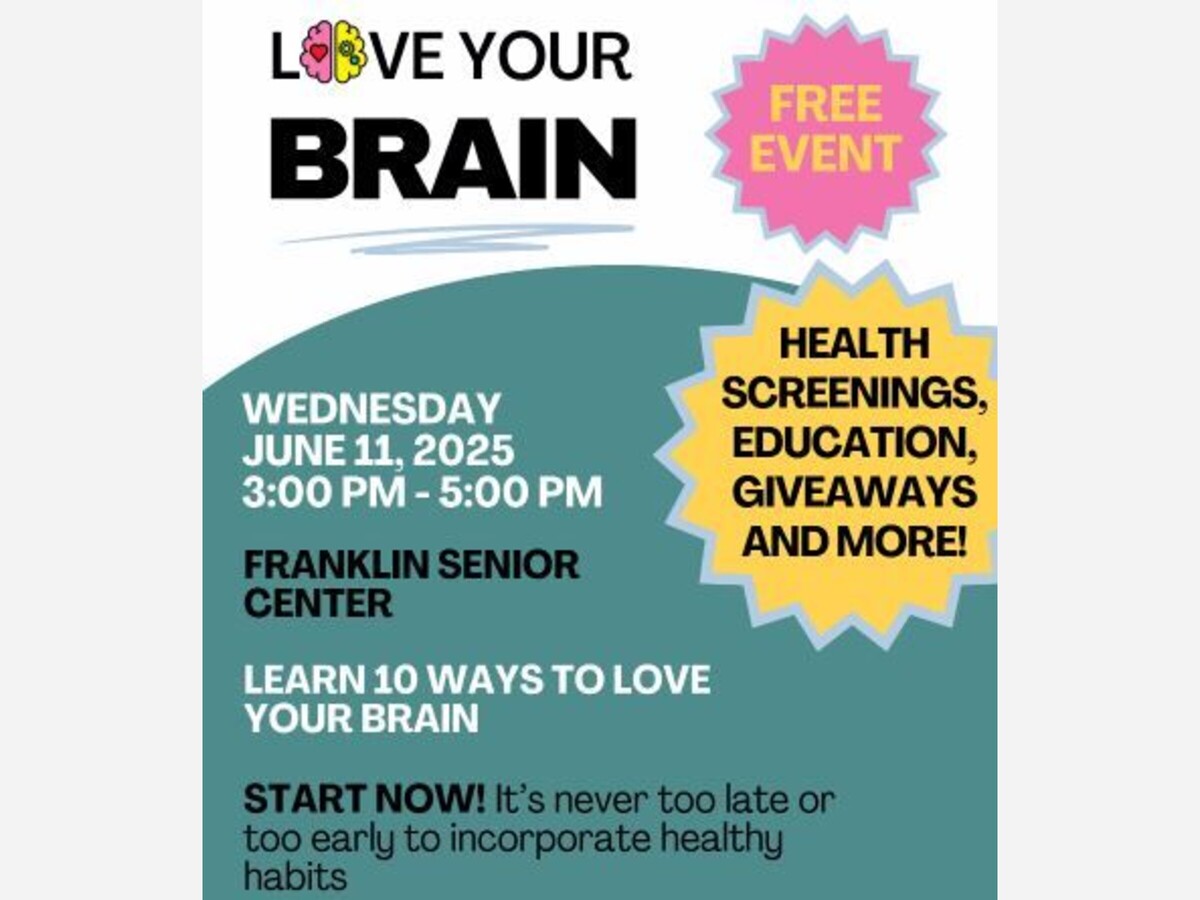 The Franklin Health Department is working on a Healthy Brain Initiative to focus on brain health and the “10 ways to love your brain” to decrease the risk of dementia and cognitive decline. This is an all-ages event.