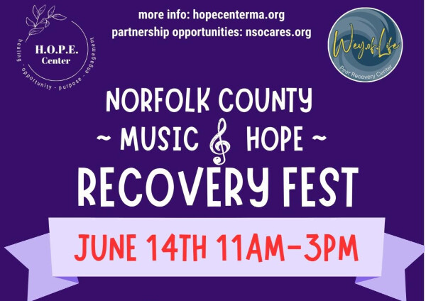 The Norfolk County Sheriff's Office is hosting "A DAY OF MUSIC & HOPE!," the FREE Norfolk County Recovery Fest, taking place on Saturday, June 14th from 11 AM to 3 PM at our Braintree Public Safety Complex, 2015 Washington Street, Braintree. The Recovery Fest will feature a day of live music with several incredible local bands, along with our MC Mathematics, and fun activities for all ages. We’ll have our own Zip Line open to challenge your adventurous side and a variety of exciting activities for the whole family. Plus, Massachusetts Young People in Recovery will be hosting its annual competitive cornhole tournament which is open to the public. Oh - and don't forget the free food! We will have a number of vendors present, all of whom are involved in the recovery community, offering resources and support! Mark your calendars for this fun and meaningful event and keep an eye out for more information coming soon.