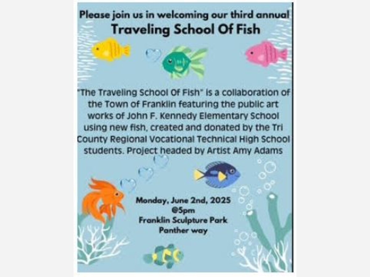 The third annual installation of the “Traveling School of Fish” is to be welcomed on Monday, June 2 at 5 pm. The display is a refresh from a collection that was placed by the Kabat family with the Town of Franklin in 2014. The Town of Franklin has been instrumental in supporting everything needed for the installation to continue to live at the Sculpture Park.