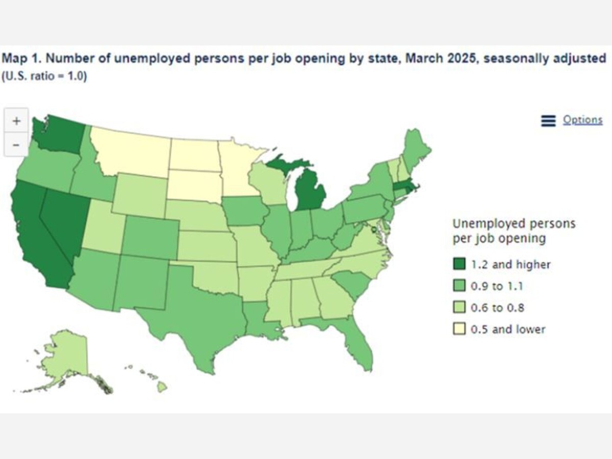 Massachusetts had 148,000 job openings in March 2025, the U.S. Bureau of Labor Statistics reported on Friday.