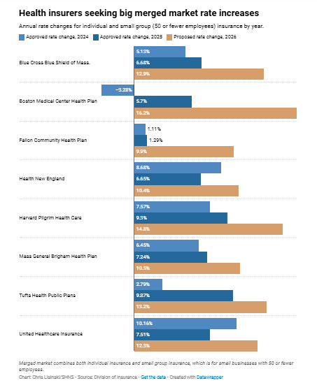 "Health care costs, as reflected in the proposed rates filed by health insurers, are simply unsustainable. I directed our Insurance Commissioner to closely scrutinize these filings as part of the rate review process," Healey said in a statement to the News Service. "What is clear is that we all must do much more to lower the cost of health care in this state."