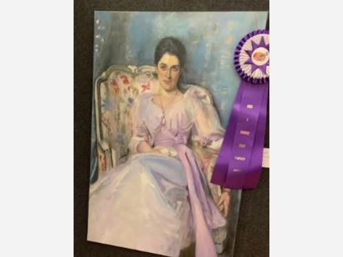 The First Annual Fakes and Forgeries exhibit at the Franklin Historical Museum drew in excess of 175 attendees at its Saturday opening, despite the rain. Sponsored by the Franklin Art Association in collaboration with the Franklin Historical Museum, the event included more than 50 works of art by local creatives inspired by the work of earlier artists. The more than 100 attendees at the show had the opportunity vote on the ‘People’s Choice’ for Best of Show, and that honor went to a vital and riveting remake of John Singer Sargent’s 1892 painting of Lady Agnew. The creator, in this case, was Jamie Derr, a vocalist and award-winning artist in both water colors and oils, who is a member of the Providence Art Club. The exhibit continues through Sunday, June 22, during regular museum hours (Saturday 10-1 and Sunday1-4) as well as during Strawberry Stroll (4-8 on Friday the 13th) at 80 West Central Street.