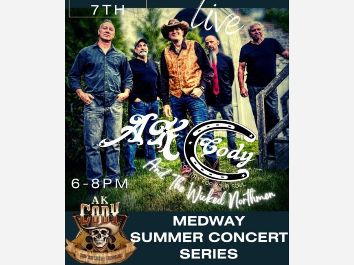 AK Cody and the Wicked Northmen are performing at the Medway Summer Concert Series, from 6-8 pm, Monday, July 7 at 123 Holliston Street in Medway, (Former VFW / Medway Parks & Rec Building).