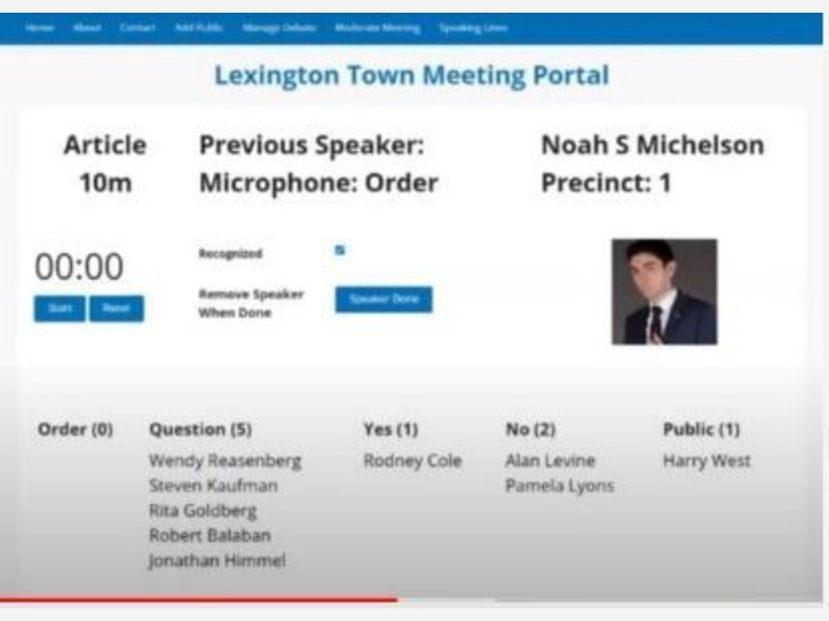 When checking in to participate remotely, the system would take a still image of a voter. Throughout the meeting, town staff would employ an audio-video connection to reconfirm the name and address of randomly chosen voters while viewing the still image captured at check-in, Bernstein said. The image would be deleted as soon as the meeting ended, but would help town staff easily see if someone is impersonating someone else.