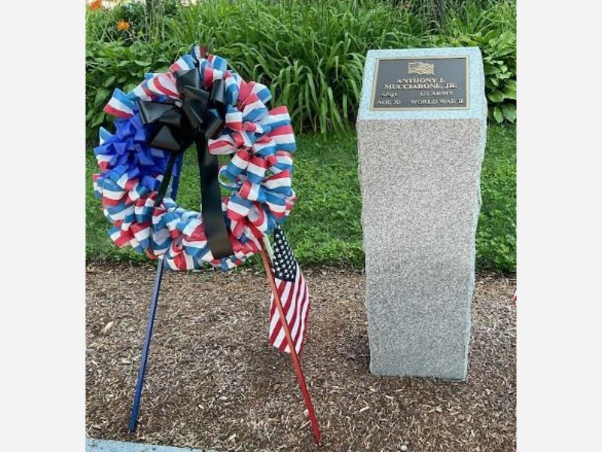 On Wednesday, at 9 am, the Veterans Memorial Walkway on the Franklin Town Common was once again the scene of a memorial service, organized and conducted by Franklin VFW and American Legion with the Franklin Veterans Office, in this case recognizing the 81st anniversary of the day on which Franklin native, Staff Sergeant Anthony J. Mucciarone, Jr., died in France in 1944.