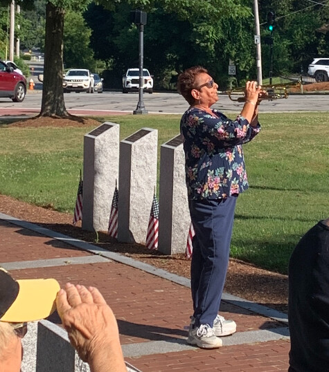 Buglers able and willing to participate in ceremonies like those repeated dozens of time each year in Franklin, are few and far between. And the event organizers have been delighted to recently welcome the talents of Milford resident, Jen Hozempa, (below) who now shares duties with two Franklin men.