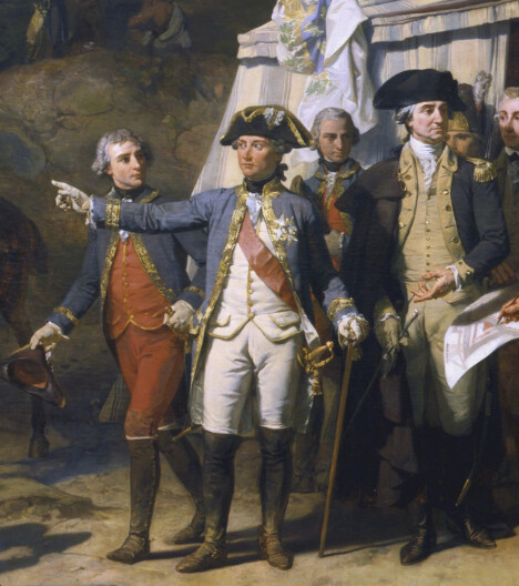 Above, Rochambeau and Washington at Yorktown as depicted by a French painter.