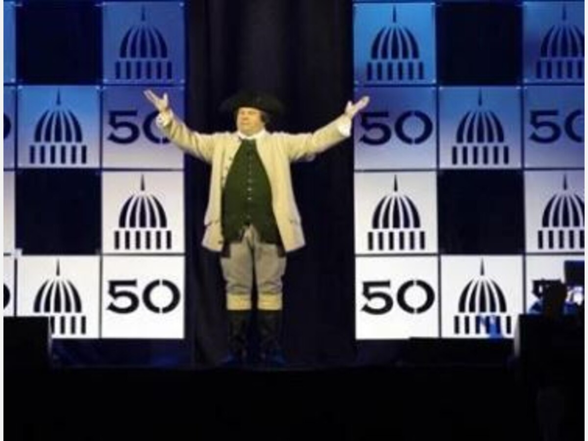 An actor playing Paul Revere beckons to the crowd at the National Conference of State Legislatures' annual meeting in Boston on Aug. 5, 2025.Hosting more than 8,000 legislators, staff and guests from across the nation might seem like bad timing for Massachusetts lawmakers to face new ballot campaigns aimed at docking their pay and forcing open their records — or maybe it offered a chance to find allies who understand the pressure. In the Seaport convention center, the National Conference of State Legislatures held a "Ballot Measures as Barometers" panel on Wednesday, the same day that folks across town were filing 2026 initiative petition language and signatures and thinking about the road to next fall's ballot. Among the 47 measures residents and advocacy groups hope to put before voters (some duplicates) are proposals that seek to overhaul the financial stipends that legislative leaders award to many lawmakers, and subject the governor's office and Legislature to the state's public records law.