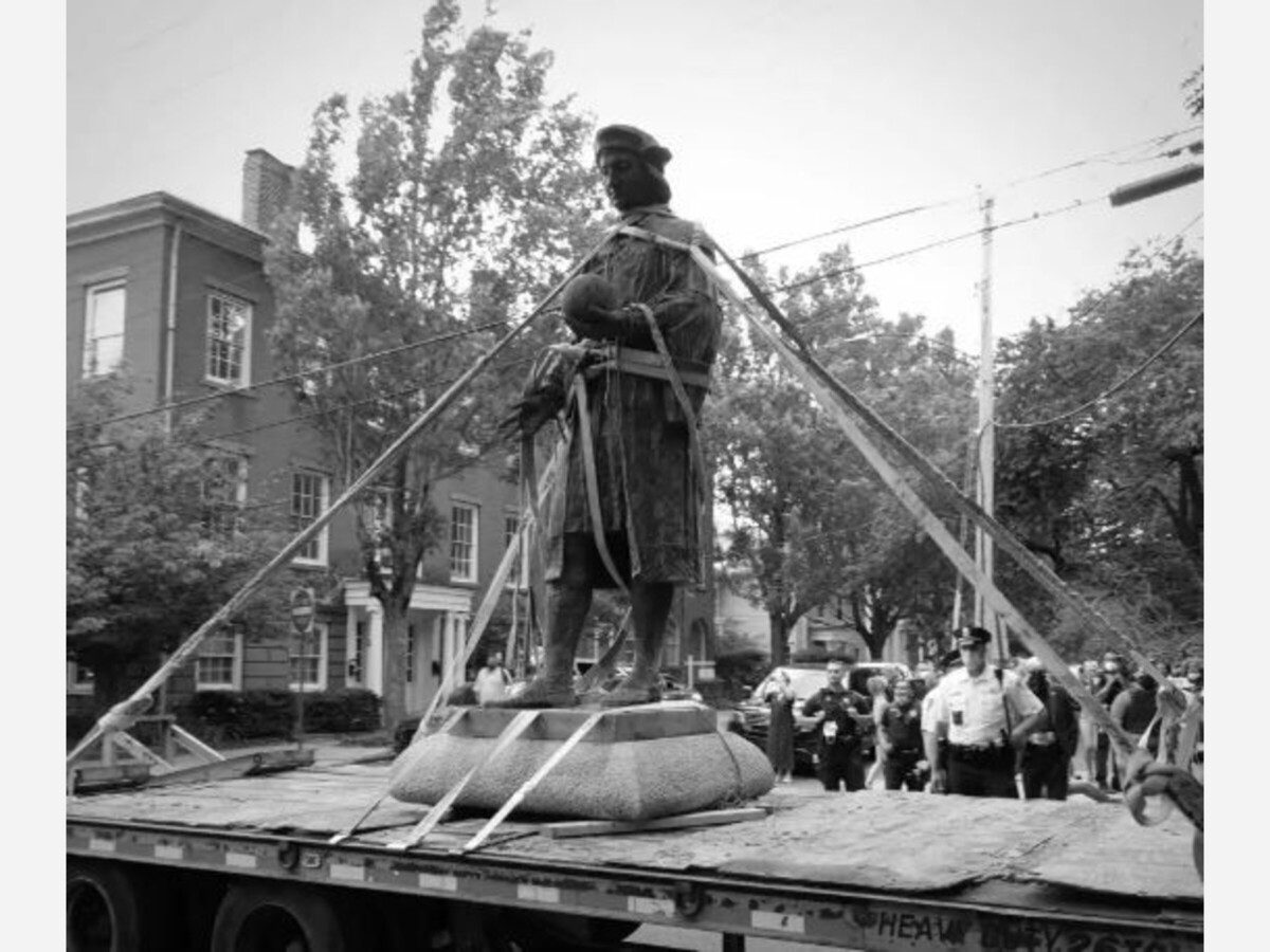Image: The 2020 removal of a Columbus statue from an Italian neighborhood in New Haven, conducted with no public hearing or publicly available records, has prompted lawsuits and charges of illegal government actions..