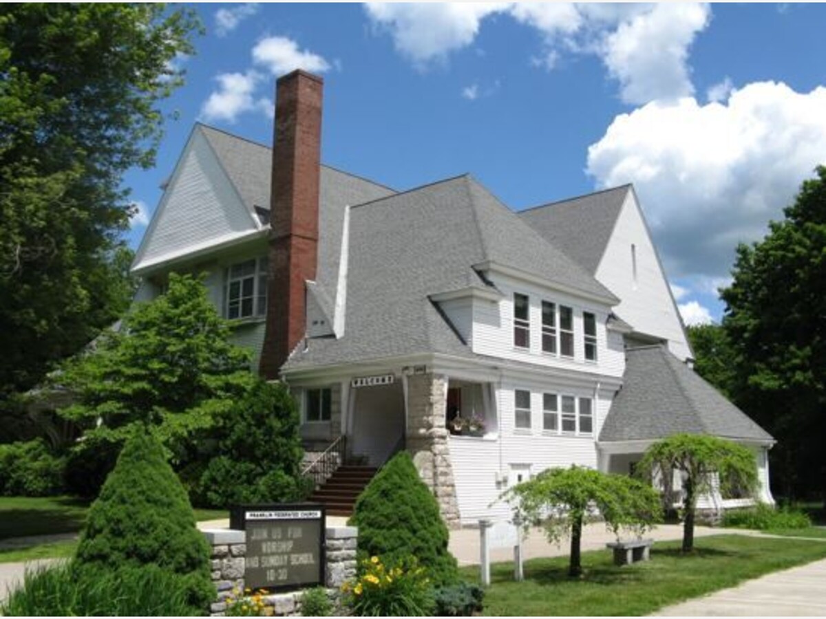 Above, the Franklin Federated Church located at the intersection of High and Main near the Town Common.