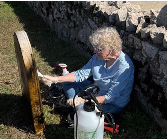 After obtaining approval from the Franklin Cemetery Association, Bowman arranged for proper training in stone preservation and secured funding for materials. The initial training for volunteers, faculty, and community members took place in 2024t, followed by a larger preservation event with Dean students in September of that year.