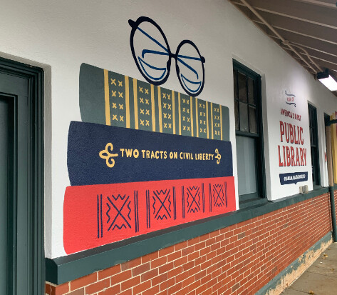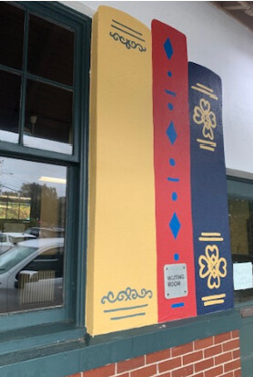 Nisbet said winning the project was ‘pinch me’ moment. Her designs relate to the town’s status as the home of the nation’s first public library and draw from the story of the book donor, Ben Franklin, as well as the designs and titles of some of the books he gave, still preserved at the library. She also gave a shout out to her husband and three children, in attendance, one of whom explored the station and seemed ready to start brewing coffee and serving customers!